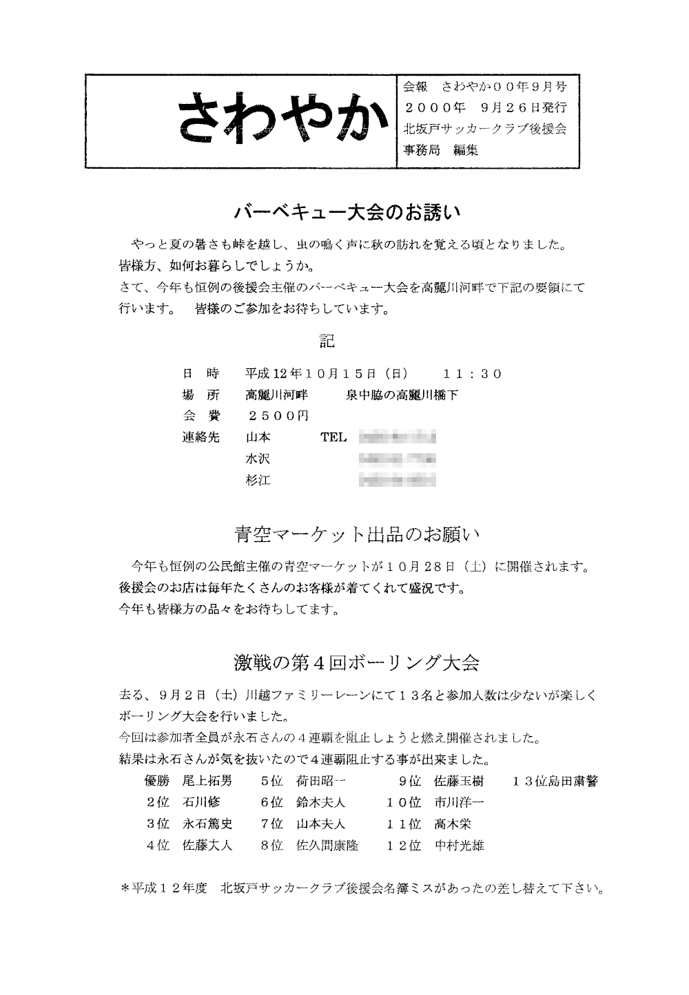 会報さわやか 2000(平成12)年9月26日号