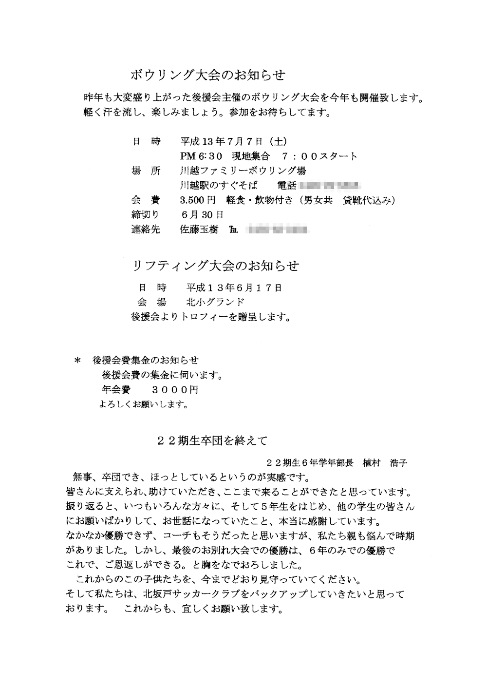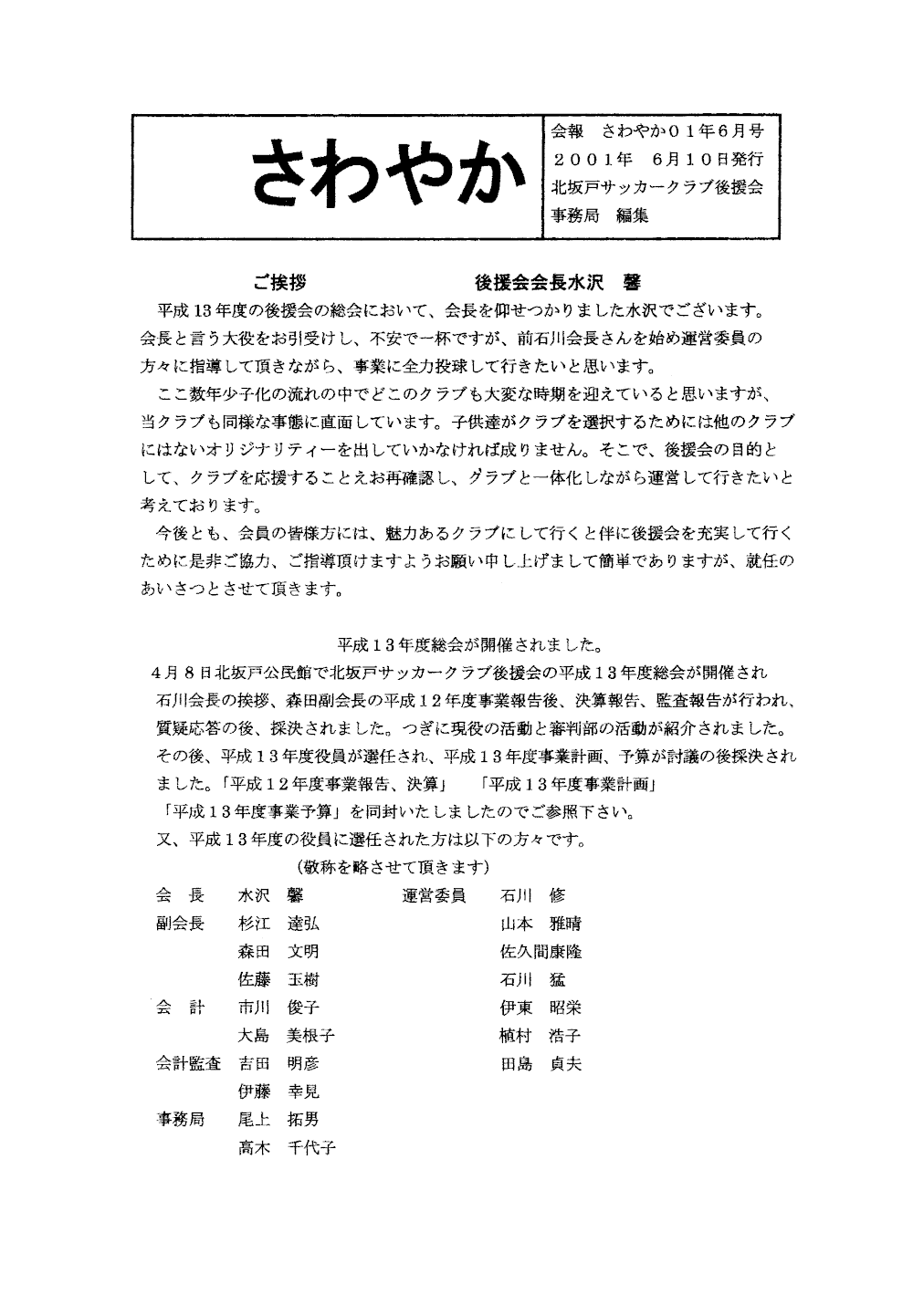 会報さわやか 2001(平成13)年6月10日号